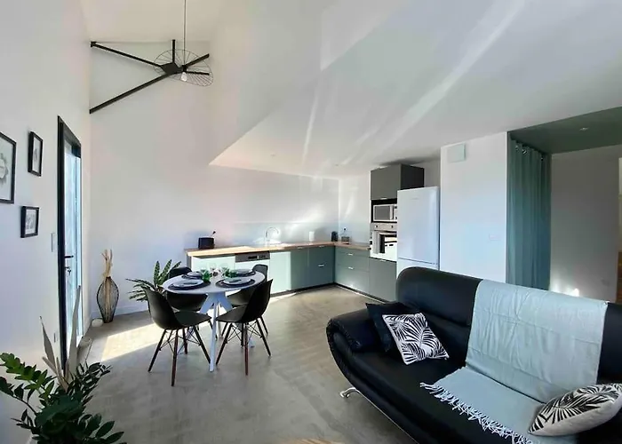 La Le Tropical, Maison T3 - 55M2 está amueblada con un sofá, ventanas insonorizadas. Los huéspedes también pueden beneficiarse de TV y TV de pantalla plana con canales vía satélite. Los cuartos de baño disponen de una ducha a ras de suelo y un inodoro separado, secador de pelo y toallas.